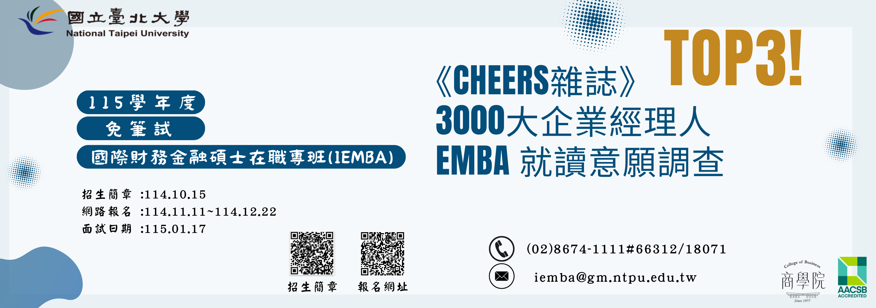 【115學年度 國立臺北大學 商學院碩士在職專班】招生說明會 開始報名